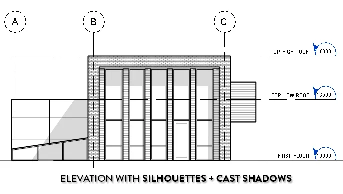 If you draw shadows manually to add a sense of depth to an elevation or plan it is common to use a 45º angle (also 30º and 60º). For a detail drawing or enlarged elevation, you can start by isolating the objects that you want to focus on. Open the elevation (or section) settings dialogue box of the current viewpoint.